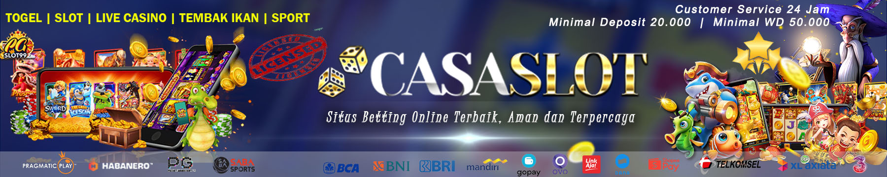 Selamat Datang Di Situs Betting Online Terbaik Aman Terpercaya || Depo Min 20RB Dan Withdraw Min 50RB || Deposit Via Bank, Ewallet Dan Pulsa || Harap Membaca Syarat Dan Ketentuan Yang Berlaku || Terimakasih, Salam CASASLOT...